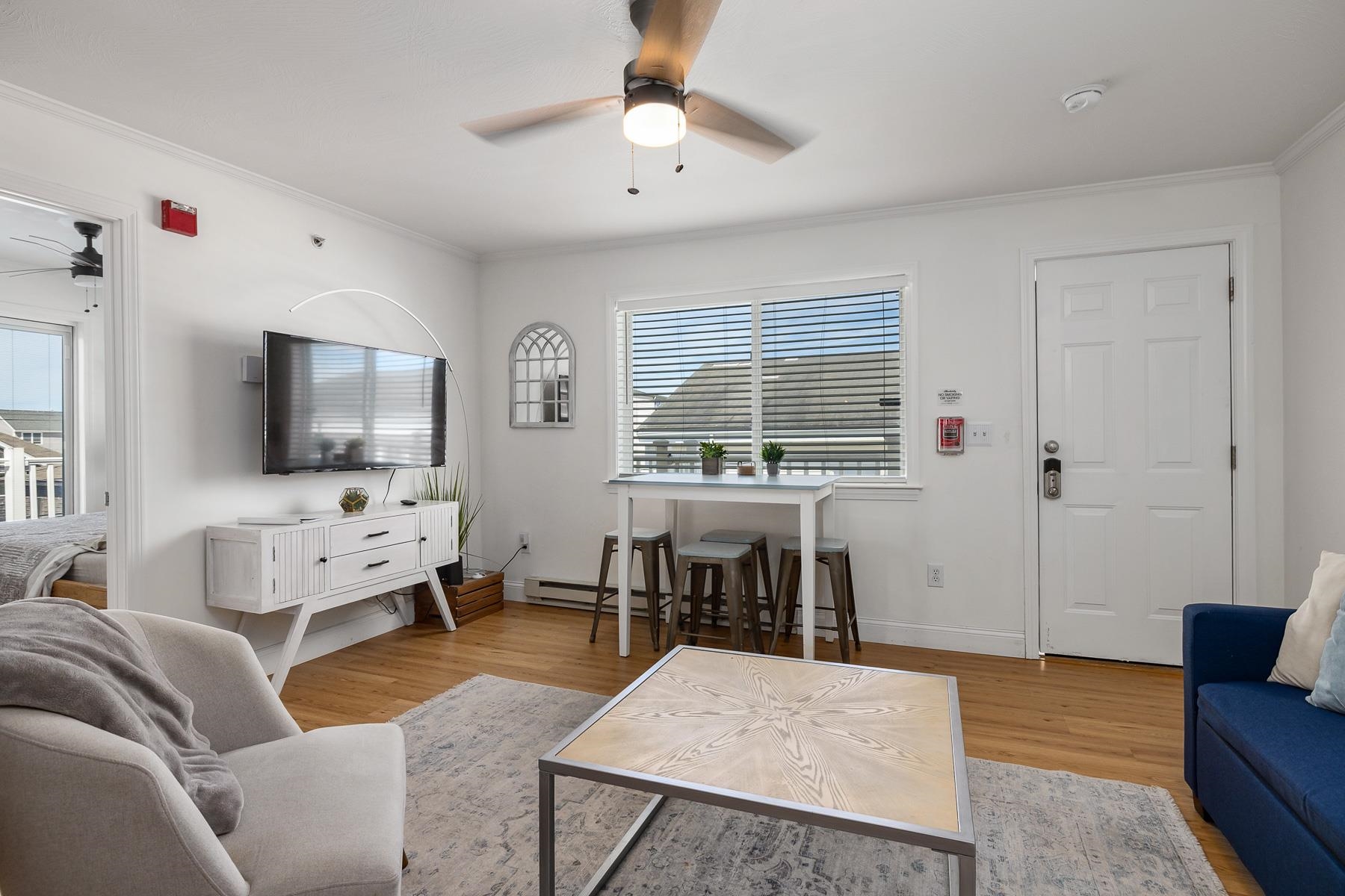 Welcome to an elegant coastal retreat at 12 Atlantic Avenue. This modern residence exudes sophistication and comfort, offering a perfect blend of style and functionality. Step into this thoughtfully designed condo featuring two bedrooms and updated kitchen and bath. The open-concept layout effortlessly connects the living areas, creating a bright and inviting atmosphere ideal for both relaxation and entertaining. The charming porch serves as a delightful extension of your living space, perfect for watching the waves crash, and for catching the fireworks. Enjoy the convenience of a deeded and assigned parking space. Experience the elegance and modern comfort of this exceptional unit, perfectly situated to offer both tranquility and the vibrant energy of coastal living. Embrace the opportunity to make this sophisticated residence your new home. Short term rental and pets are allowed.