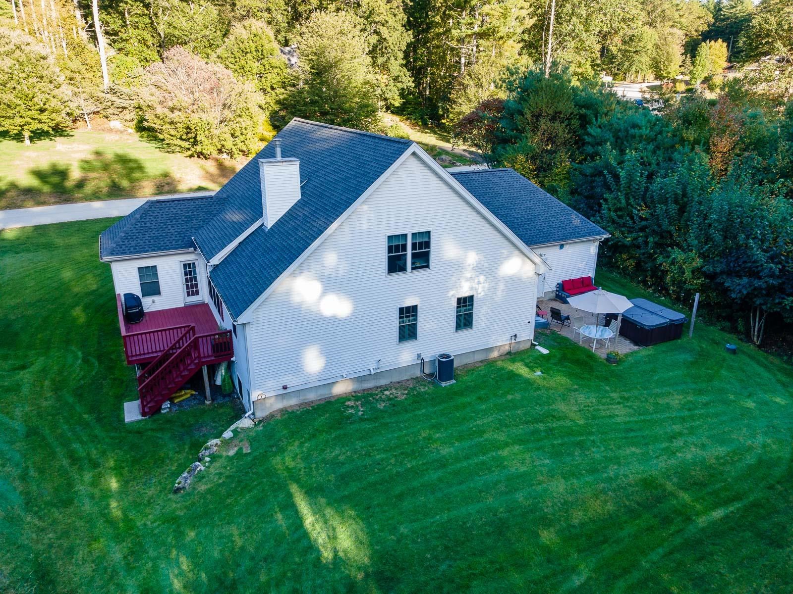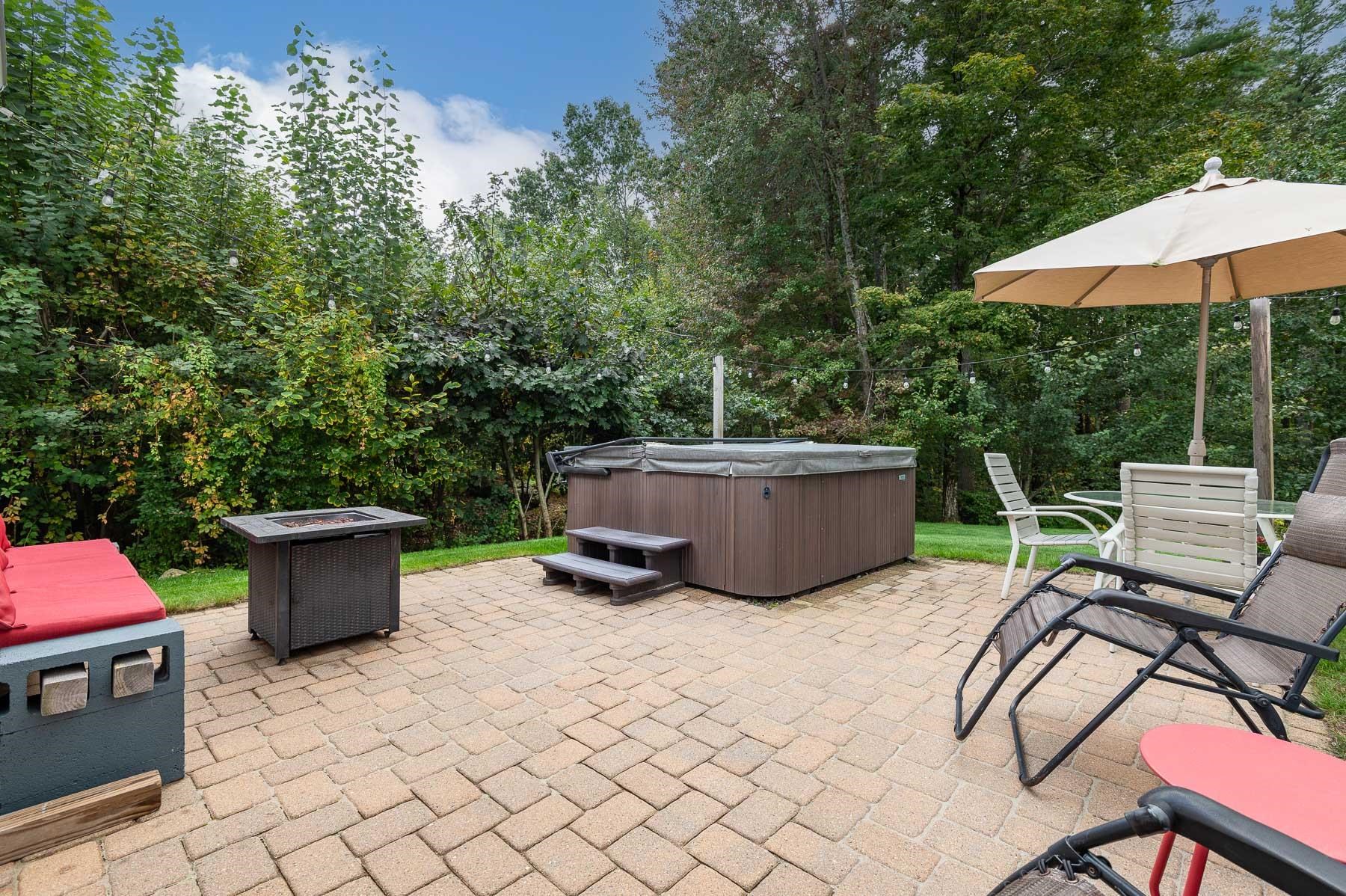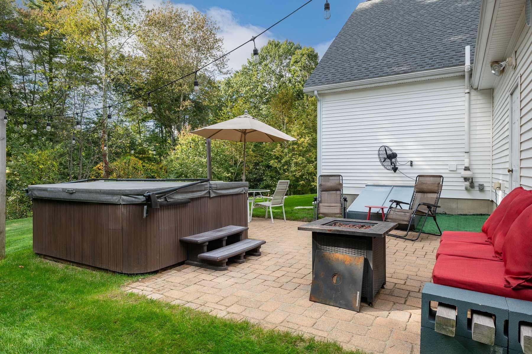 Welcome to your dream home at 5 Chandler Lane in the charming town of Amherst, NH. This modern, smartly designed residence boasts 3,600 square feet of thoughtfully crafted living space. Step into the open concept layout that seamlessly blends living, dining, and kitchen areas beneath stunning cathedral ceilings. The cozy ambiance of the gas fireplace and the elegance of hardwood floors create a warm and inviting atmosphere. The kitchen is a chef's delight, featuring granite countertops and ample space for culinary creativity. The first-floor primary suite is a serene retreat, complete with a walk-in closet and a spacious bath for a touch of luxury. With two additional bedrooms upstairs, there is plenty of space for family or guests. Ascend the granite stairs to the delightful maintenance-free front porch, perfect for enjoying peaceful moments. The home includes a finished lower level for entertainment or gym space, and a private backyard oasis with a large deck piped for propane grill and a hot tub for ultimate relaxation. Enjoy the convenience of central air, a radon mitigation system, an irrigation system and a generator with a separate breaker box have you covered for power outages for uninterrupted comfort. New roof with 20+ year transferable warranty. Minutes away from 2 golf courses (Amherst Country Club & Souhegan Woods), Jasper Valley Swim & Tennis Club and Souhegan High School. This home truly offers everything you need for a comfortable and luxurious lifestyle.