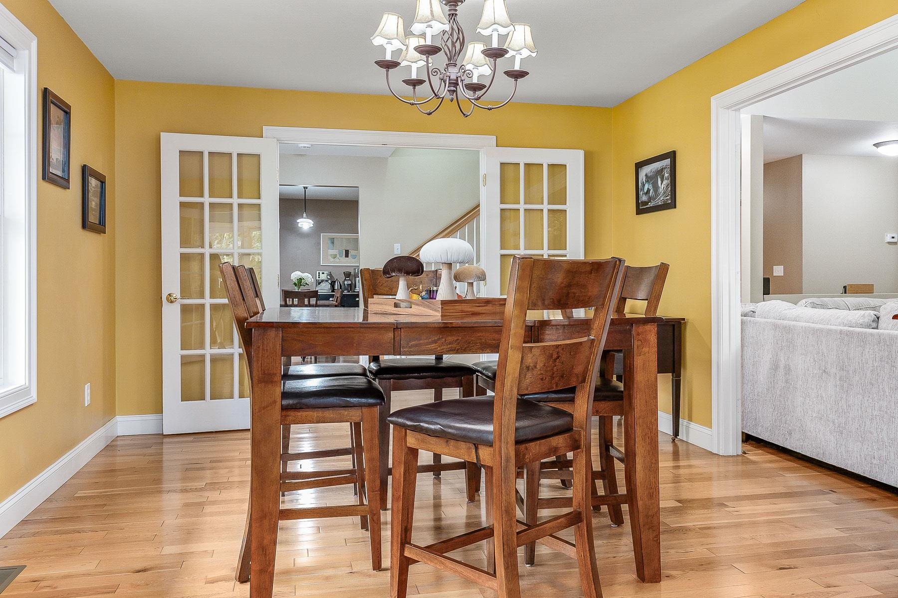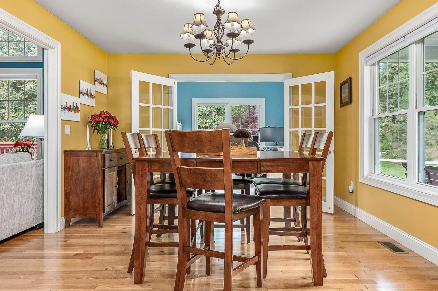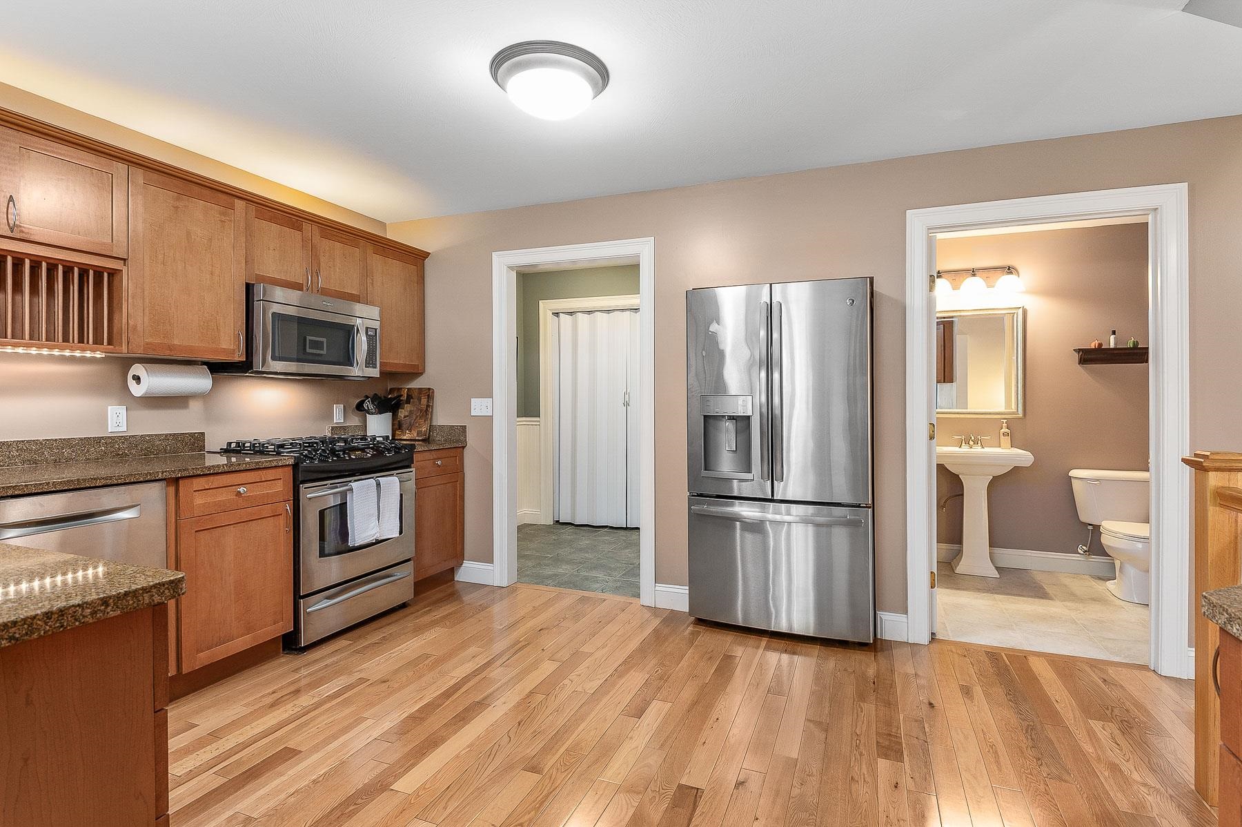 Welcome to your dream home at 5 Chandler Lane in the charming town of Amherst, NH. This modern, smartly designed residence boasts 3,600 square feet of thoughtfully crafted living space. Step into the open concept layout that seamlessly blends living, dining, and kitchen areas beneath stunning cathedral ceilings. The cozy ambiance of the gas fireplace and the elegance of hardwood floors create a warm and inviting atmosphere. The kitchen is a chef's delight, featuring granite countertops and ample space for culinary creativity. The first-floor primary suite is a serene retreat, complete with a walk-in closet and a spacious bath for a touch of luxury. With two additional bedrooms upstairs, there is plenty of space for family or guests. Ascend the granite stairs to the delightful maintenance-free front porch, perfect for enjoying peaceful moments. The home includes a finished lower level for entertainment or gym space, and a private backyard oasis with a large deck piped for propane grill and a hot tub for ultimate relaxation. Enjoy the convenience of central air, a radon mitigation system, an irrigation system and a generator with a separate breaker box have you covered for power outages for uninterrupted comfort. New roof with 20+ year transferable warranty. Minutes away from 2 golf courses (Amherst Country Club & Souhegan Woods), Jasper Valley Swim & Tennis Club and Souhegan High School. This home truly offers everything you need for a comfortable and luxurious lifestyle.